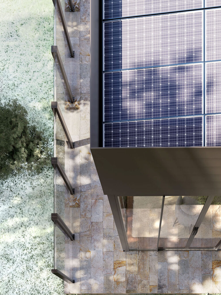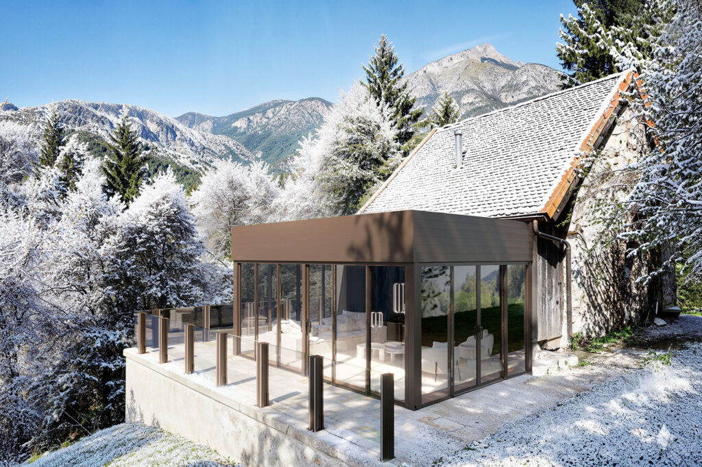 The insulating structure and aluminium fascia concealing the roof’s slope create a contemporary architecture, perfectly balancing performance and design.